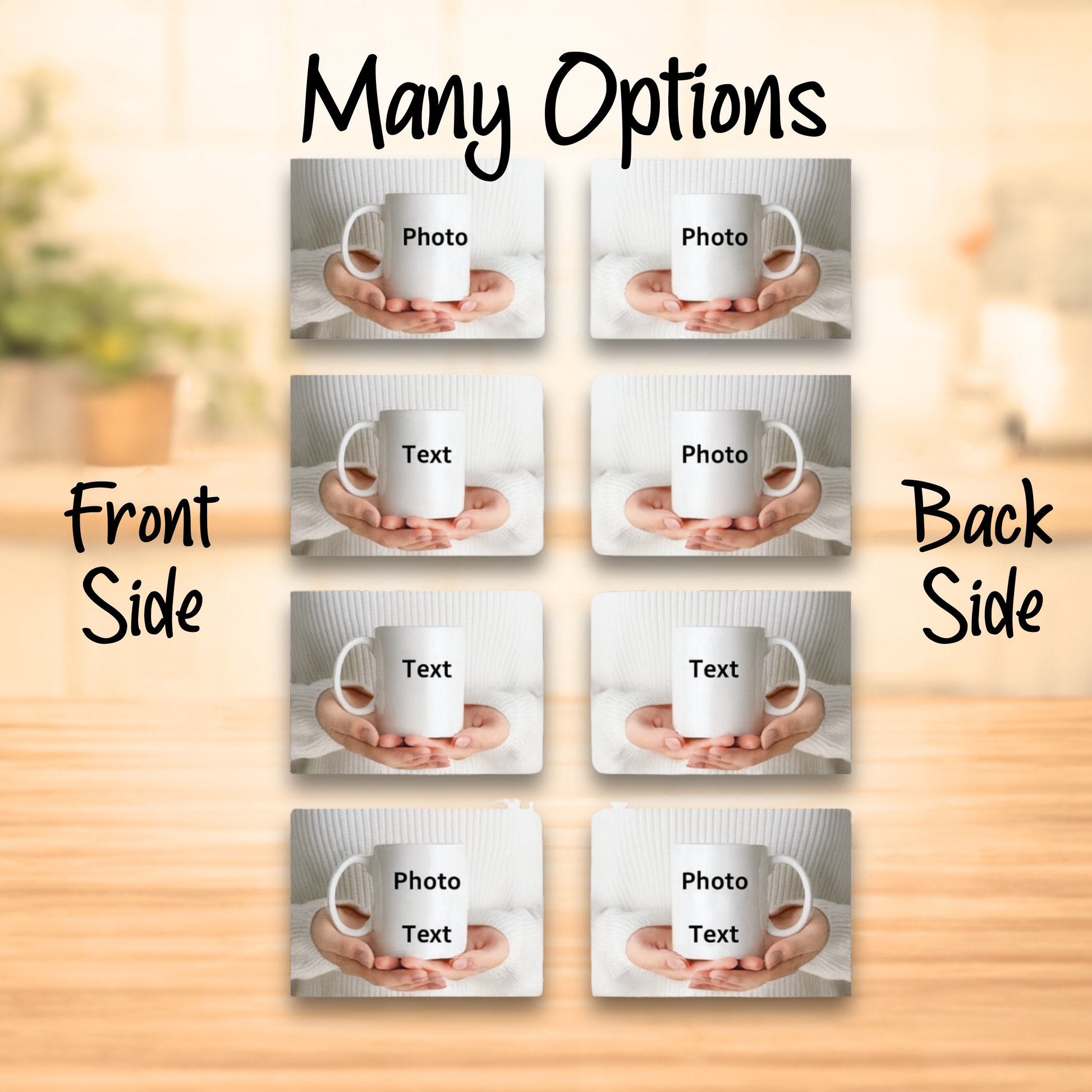 Create a one-of-a-kind custom photo or logo coffee mug that’s perfect for personal gifts or professional branding. Upload your favorite photo, company logo, or organization design to create a personalized mug that’s both meaningful and practical.