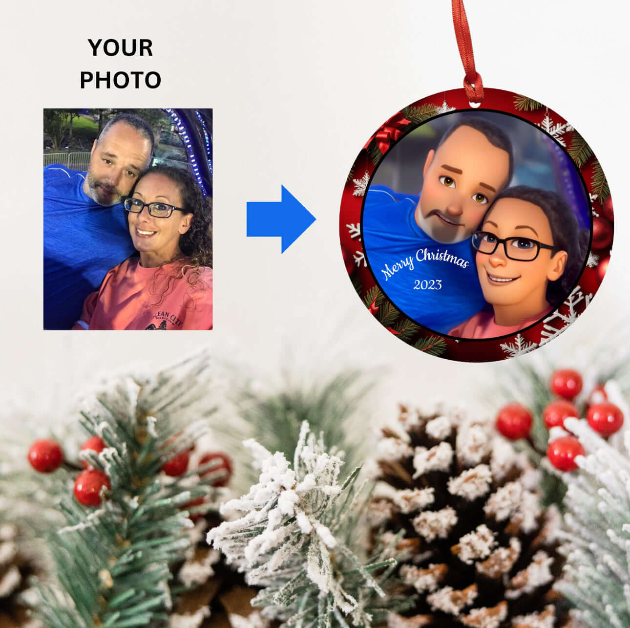 Custom Personalized Christmas Ornament - Transform Your Photo into Cartoon Art