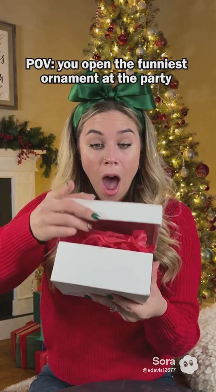 This fun Christmas holiday ornament is sure to bring lots of laughs this holiday season. All of our ornaments are created at home here on Long Island, New York. Each ornament is designed, printed, and packaged after your purchase by a member of our family (Eric, Andrea, Allie or Christian). Your ornament comes with our money-back guarantee if you don't love it.